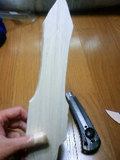 ひたすら木材をカッターで削る作業。